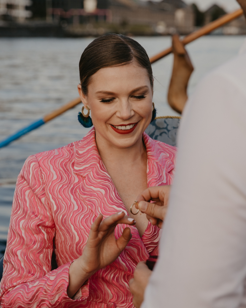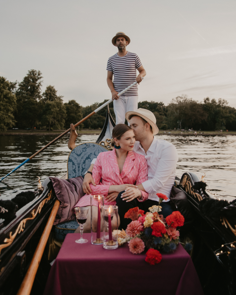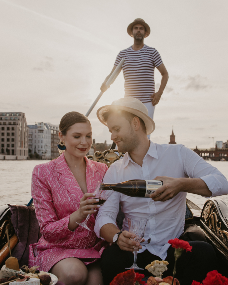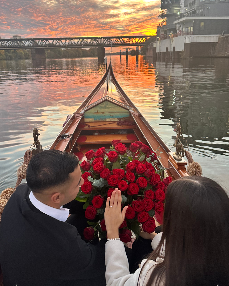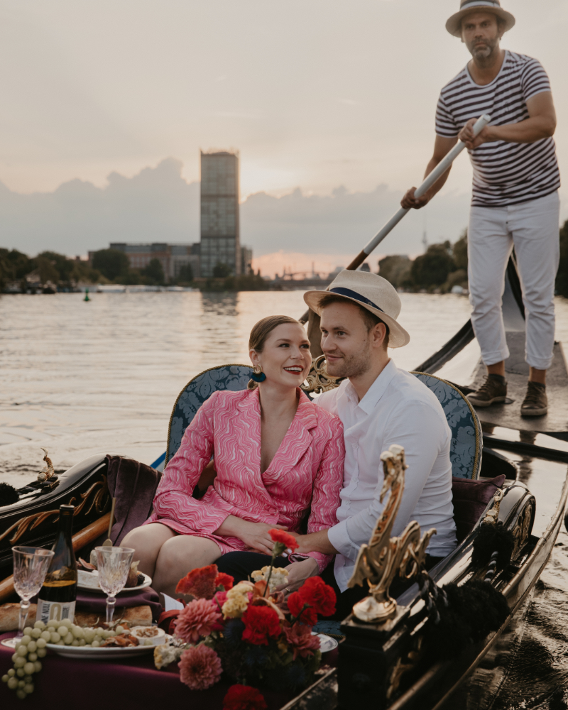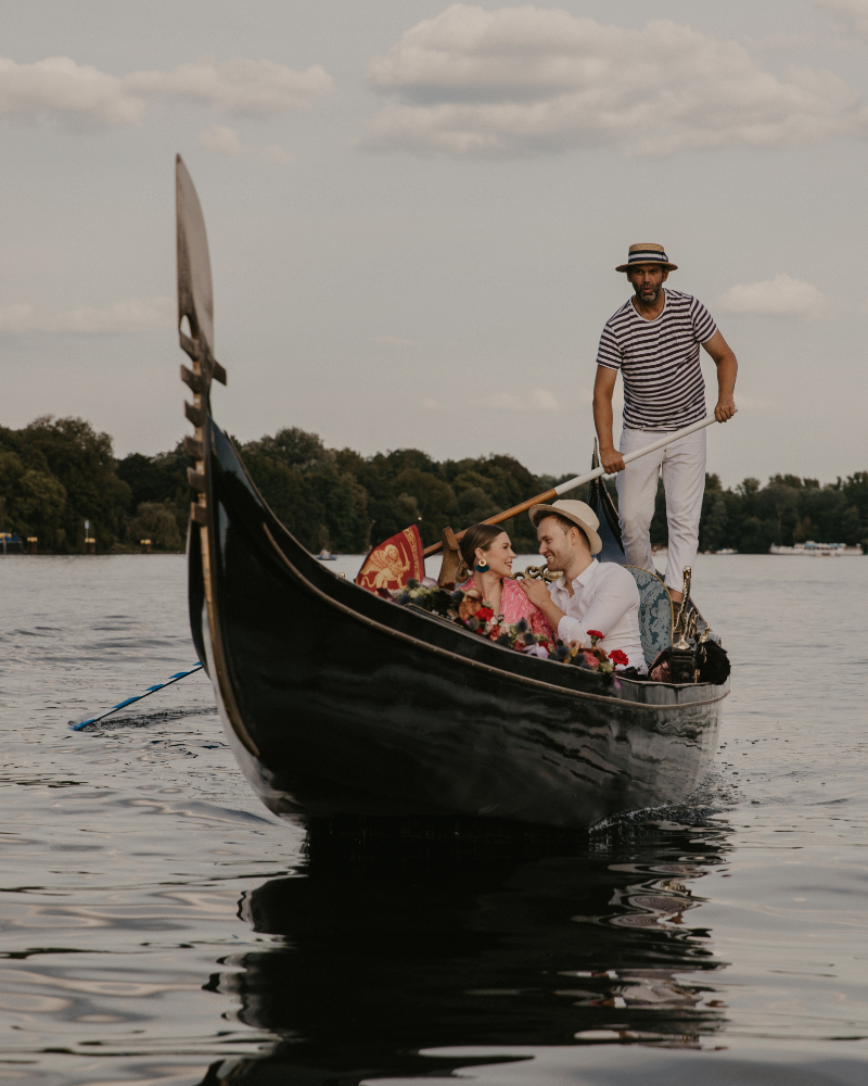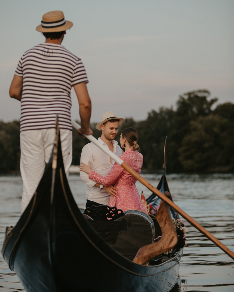 Ein Heiratsantrag in Berlin bietet viele Möglichkeiten, doch kaum eine ist so intim und authentisch wie eine Fahrt in einer original venezianischen Gondel. Während die Stadt sanft an euch vorbeizieht, bietet die Gondel die nötige Privatsphäre für den wichtigsten Moment eures Lebens. Ob urban auf der Spree im Berliner Regierungsviertel oder naturverbunden auf der Havel rund um die Inselstadt Werder – wir gestalten den Rahmen für eine Verlobung, die ihr noch euren Enkeln erzählen werdet.